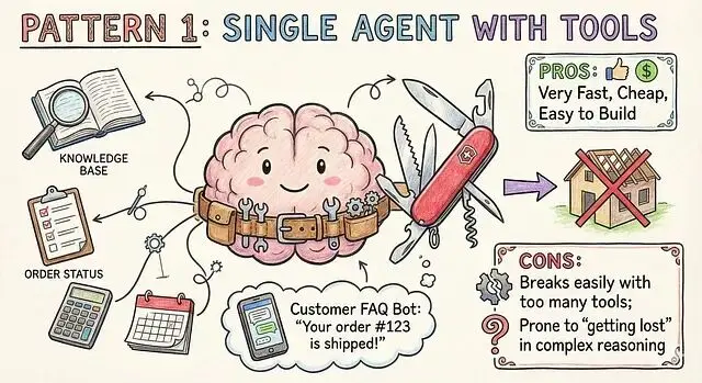 典型場景:客服 FAQ 機器人,搜知識庫、查訂單狀態,功能單一、調用簡單。