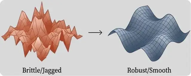 解碼器對噪聲的容忍度變高了。潛在空間裏的小擾動只會讓輸出產生小變化,不會導致徹底崩潰。