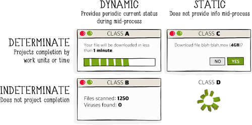 - For events lasting for 1–5s, a class D (spinner) or simplified class A indicator (progress bar) is required.