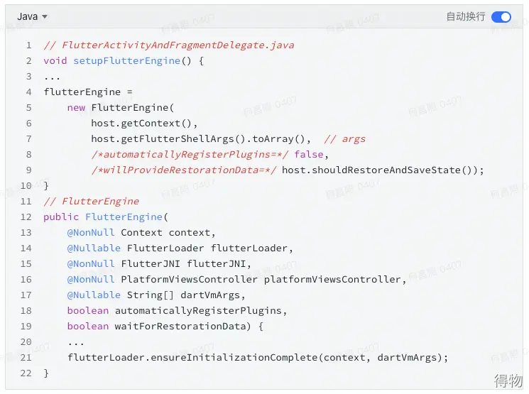 再來看看FlutterEngine的構造函數。FlutterEngine是一個獨立的flutter運行環境,通過它能使用DartExecutor執行Dart代碼。