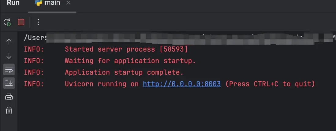 ## 本地啓動項目直接運行main.py文件中的main方法即可,debug模式自己pycharm中設置if __name__ == "__main__": import uvicorn uvicorn.run(app, host="0.0.0.0", port=8000)