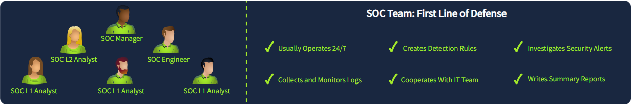 SOC (安全運營中心)的核心功能是全天候(24/7)調查、監控、預防和響應網絡威脅。根據Trellix對 SOC:https://www.trellix.com/security-awareness/operations/what-is-soc/ 的定義,“安全運營團隊負責監控和保護多項資產,包括知識產權、人員數據、業務系統和品牌完整性”。作為組織整體網絡安全框架的實施組成部分,安全運營團隊是協調監控、評估和防禦網絡攻擊的協作中心。SOC的工作人員數量可能因組織規模而異。