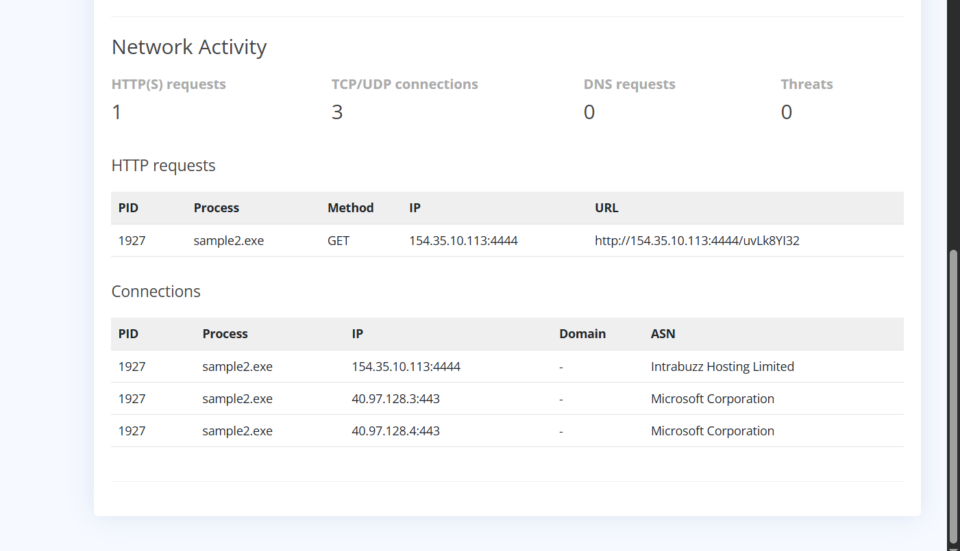 成功檢測到sample1.exe後,您收到的第一個標誌是什麼?