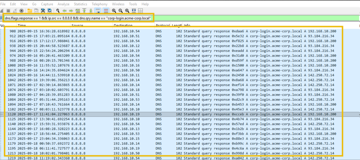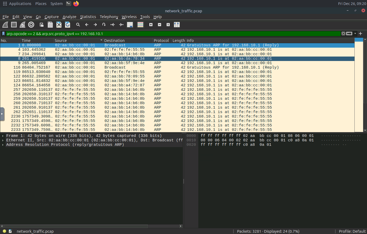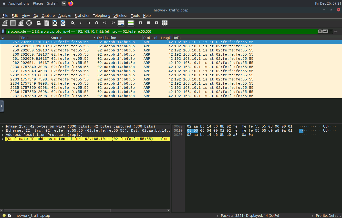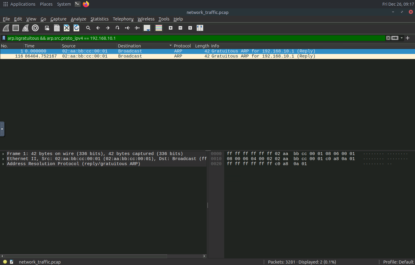 清除之前的告警文件並註釋掉舊規則。創建一條規則來過濾源 IP 和目標 IP 相同的UDP數據包,並將其應用於給定的 pcap 文件。有多少個數據包的源地址和目標地址相同?