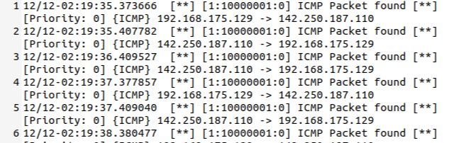 規則:alert tcp any any <> any any (MSG:"SYN PUSH ACK alert"; FLAGS:P,A; SID:10003; REV:1)