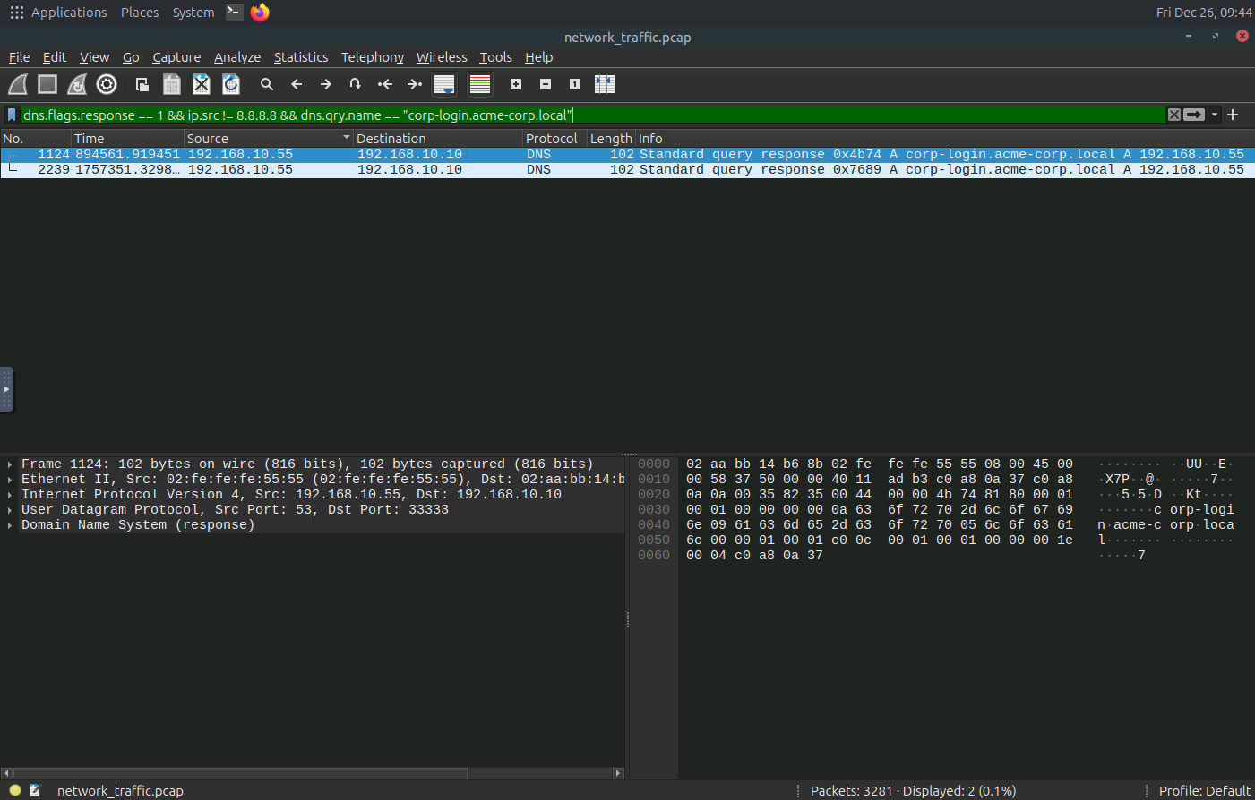 使用“task9.pcap”文件。編寫一條規則來過濾 IP ID “35369”,並針對給定的 pcap 文件運行該規則。檢測到的數據包的請求名稱是什麼?您可以使用以下命令:“snort -c local.rules -A full -l . -r task9.pcap”