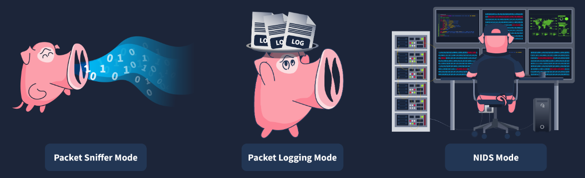 最流行的模式是默認模式(pcap)和內聯/ IPS(Afpacket)。
