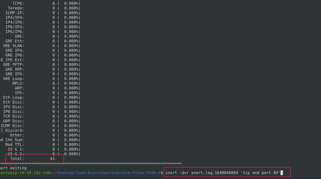 哇!我們已經掌握了 Snort 規則的基礎知識! 現在,請使用附件中的虛擬機,並導航到 Task-Exercises/Exercise-Files/TASK-9文件夾來回答問題! 請注意,您可以使用以下命令在當前目錄中創建日誌:-l