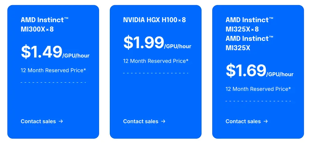 3、合約鎖定: 目前 DigitalOcean 除了支持按需實例,還支持預留實例,8 卡 H100 GPU Droplet 服務器 12 個月預定合約 價格甚至可以壓低至 1.99 美元/GPU/小時;AMDMI300X 8 卡服務器 1.49 美元/GPU/小時。如果用量大或需求穩定,與DigitalOcean 中國區獨家戰略合作伙伴卓普雲 AI Droplet 商談,還有可能申請到一定的折扣。另外,DigitalOcean 即將上線 NVIDIA B300 GPU Droplet 雲服務器,目前也可聯繫卓普雲 AI Droplet,提前預定。