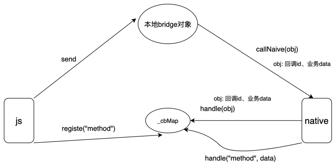 method, // 和客户端約定好定為method字段,即bridge名稱