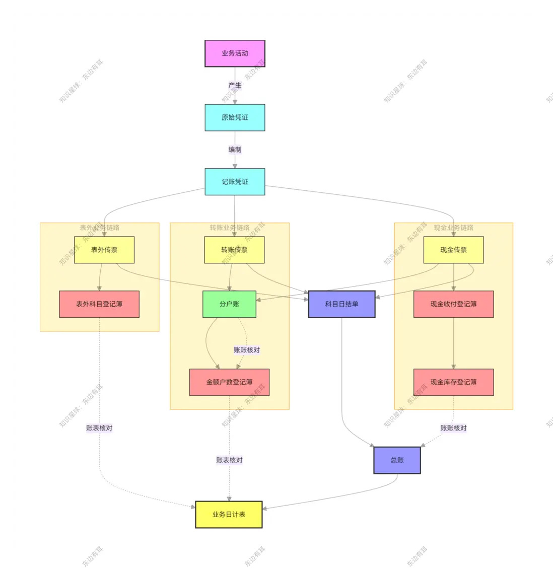 明細核算和綜合核算兩條線同時記賬,最後相互核對,形成賬賬相符的閉環——就像兩個人同時記同一本賬,最後對一下數字,確保沒有偏差。
