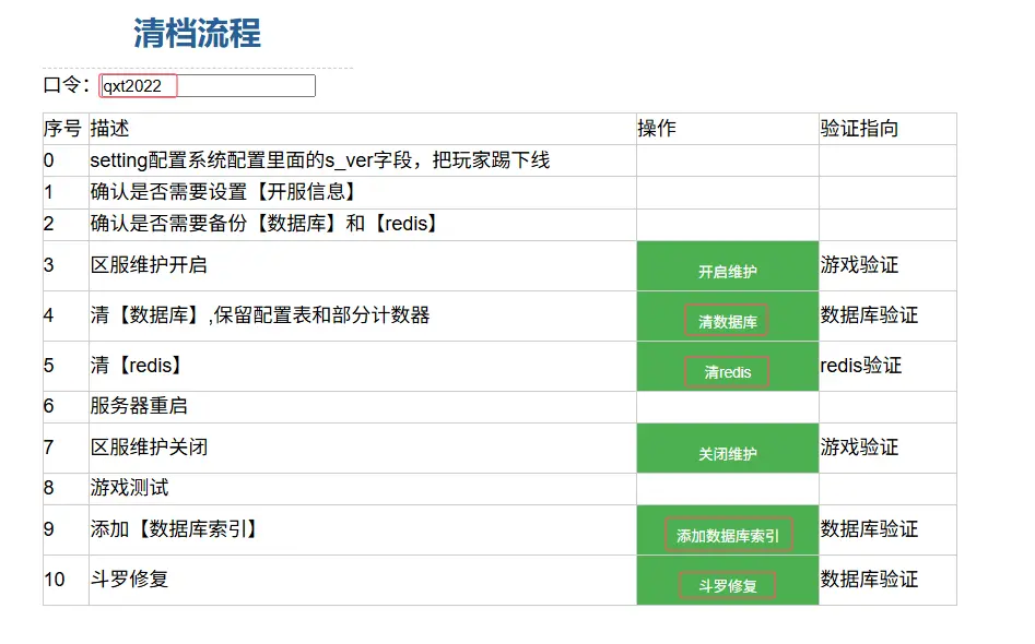 遊戲的運營後台:http://IP:4030提供了清檔功能,口令是qxt2022,然後分別點擊4、5、9、10,我簡單測試了下,應該是生效的。