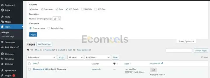 Pages這個選項卡里面可以新增頁面、管理所有頁面。