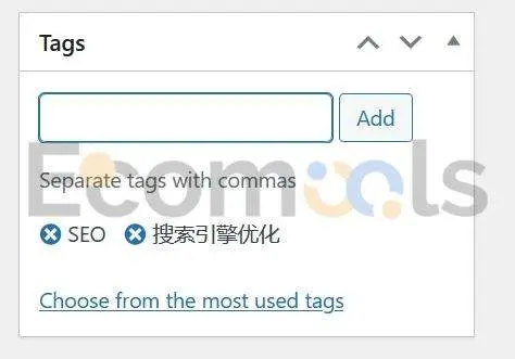 如果你網站有使用標籤分類法,可以點擊“Choose from the most used tags”中選擇最常用的標籤。