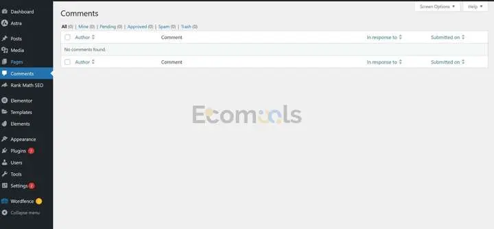 Comments標籤欄裏面可以讓我們管理訪客對文章和頁面的評論,包括審核、回覆、刪除和標記垃圾評論。