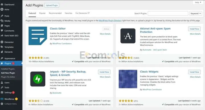 點擊Add New Plugin中就可以在插件市場中搜索我們需要的插件,付費插件跟付費主題一樣,需要從他們的官網中下載並通過壓縮包的方式上傳安裝。