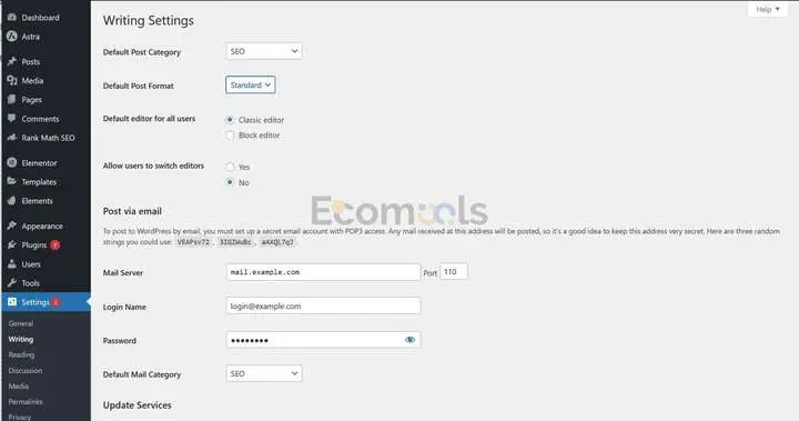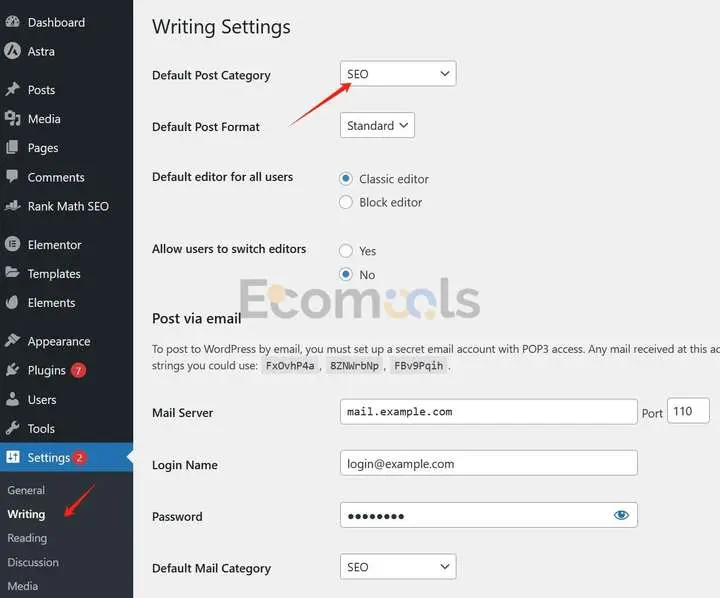 如果需要更改默認類別,可以通過“Settings”–>“Writing”中進行更改。