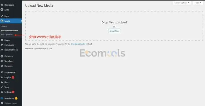 這個選項卡里面的功能用的比較少,有些插件安裝以後入口會在這個選項卡里面,比如EWWW圖片壓縮插件。