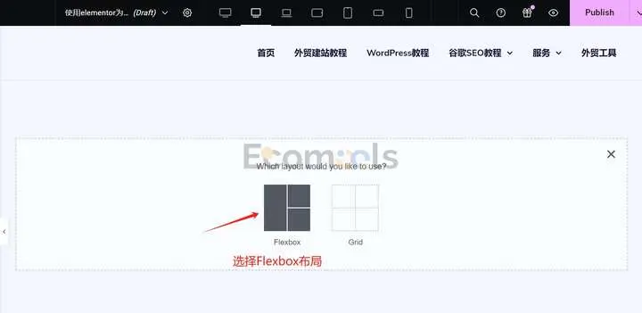 4. 選擇容器的佈局方式。我們選擇Flexbox。