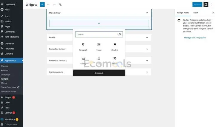 注意:我是用的是Astra主題,如果你使用的是其他主題,那麼界面以及選項會有不一樣的地方。但是設置管理側邊欄的步驟都是共通的: