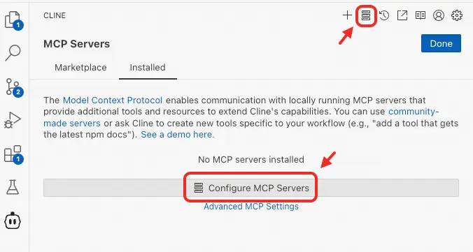 點擊 Cline 右上角 MCP Server 配置,然後點擊Configure MCP Servers