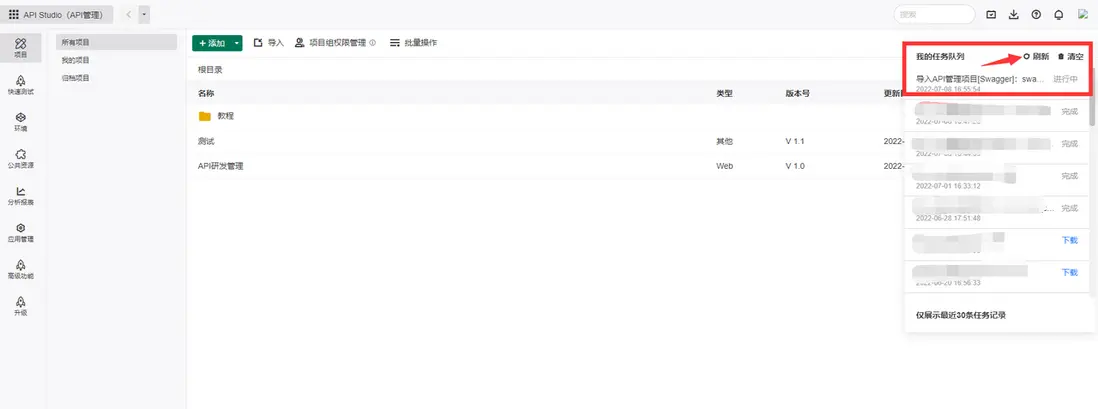 - 當右方出現任務列表時,可以點擊刷新來查看導入是否完成
