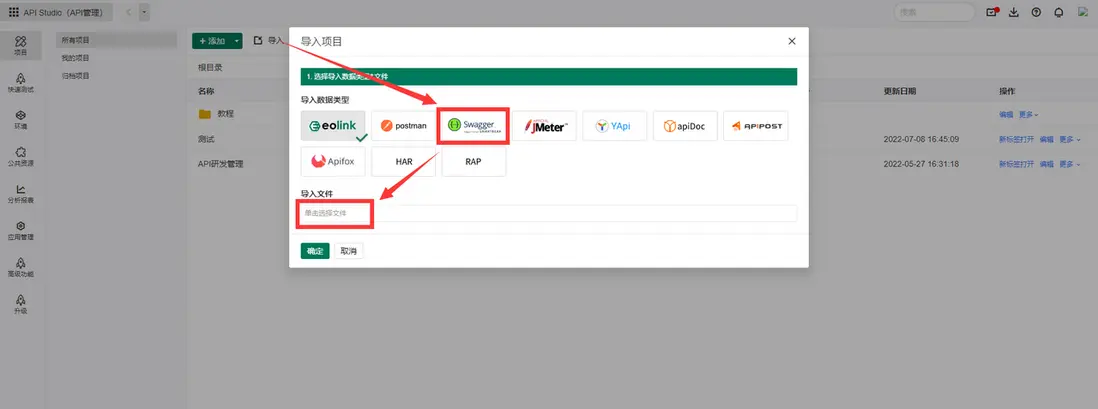 - 進入Eolink Apikit,選擇導入從Swagger導出的Json文件