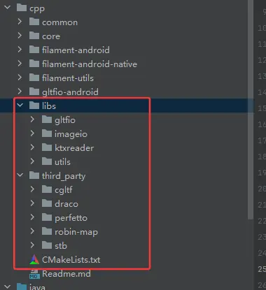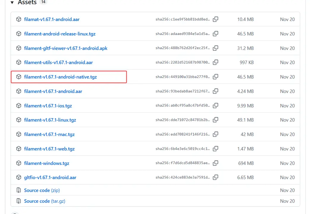 Filament 官方 Android 產物以模塊級 so形式存在: