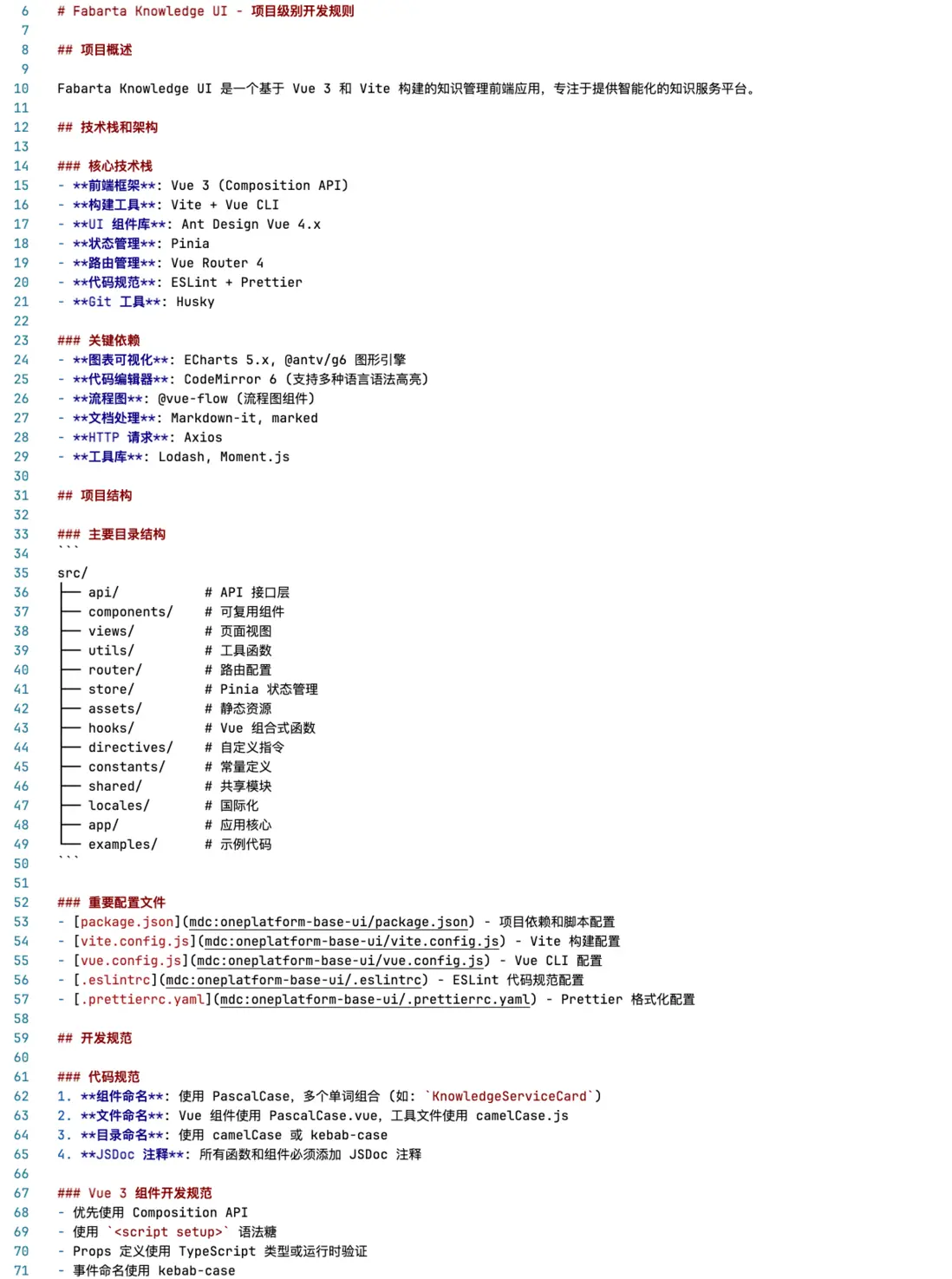 以一個Vue前端工程為例,一個完整的Project Rules包含: