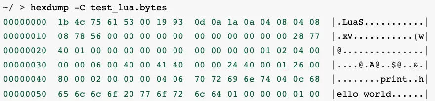 從上面的字節碼看,已經不包含源代碼,只包含函數名稱及字符串。不過 Lua 字節碼非常容易被 luadec / unluac 等工具反編譯,而且反編譯得到的 Lua 代碼幾乎與源代碼一致。