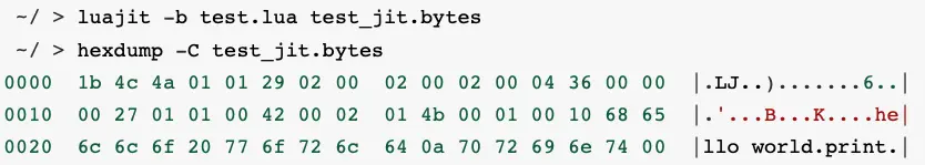 對應地,開發人員可以使用 luajit 可執行程序將 Lua 源代碼編譯為 luajit 的字節碼。
