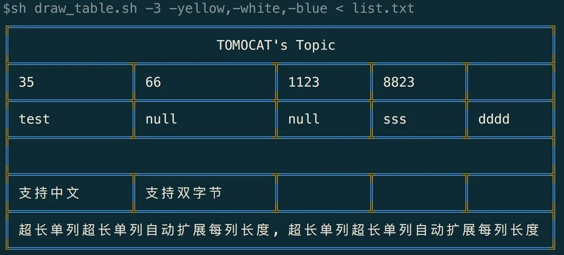 實際中經常碰到日誌採集分析的問題,可以在shell腳本加入如下的語句用於可視化輸出表格數據: