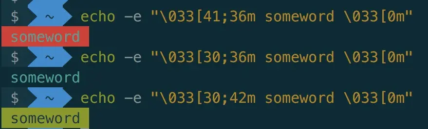 echo -e "\033[字背景顏色;字體顏色m字符串\033[0m"