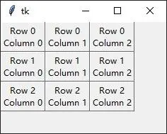 可以看到,上面這個例子佈局時,只有 Frame 才需要應用 grid 管理器,因為每個標籤和 Frame 一一對應,所以標籤不需要重複應用格子布局。