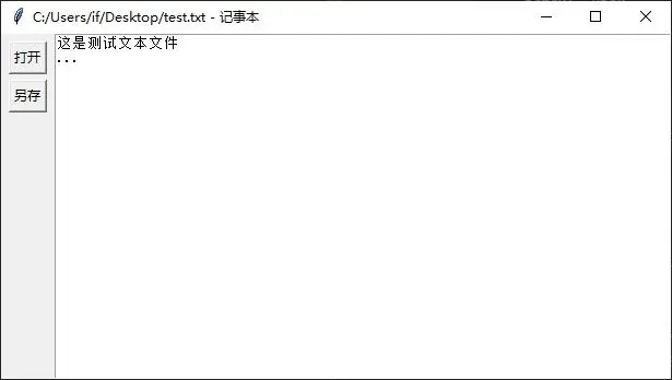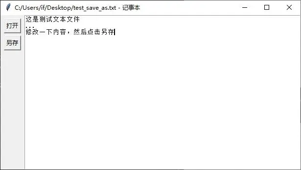 上面代碼的修改點是添加了一個響應函數 save_as_file,這個函數用於選擇另存文件位置並把編輯框內容寫入指定位置文件,然後在實例化按鈕控件 btn_save_as 時,把響應函數 save_as_file 賦值給參數 command 即可。