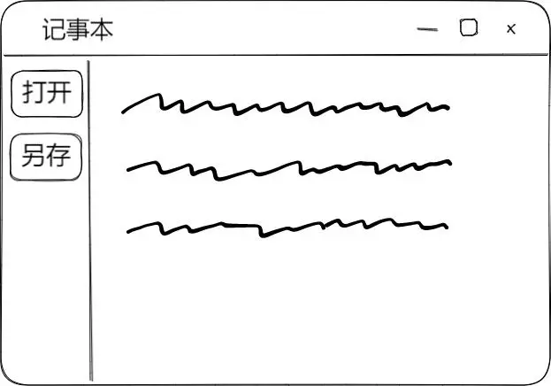 按照上面的功能需求定義,就可以給記事本定個草圖啦,長這樣