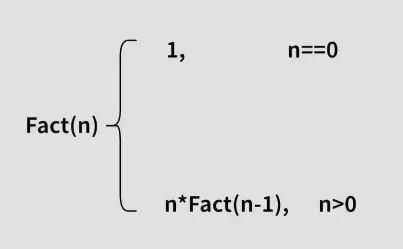 那我們就可以寫出函數Fact()求n的階乘(遞歸是基於函數的),假設Fact(n)就是求n的階乘,那麼Fact(n-1)就是求n-1的階乘,函數如下: