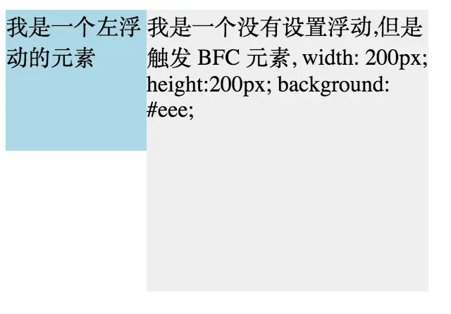 也沒有觸發 BFC 元素, width: 200px; height:200px; background: #eee;</div>
