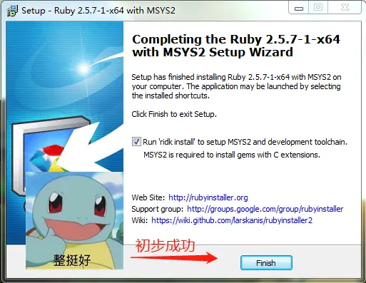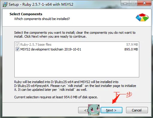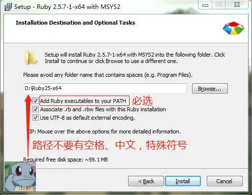 Ruby+Devkit 2.5.7-1,完整包的安裝過程比較簡單,但需要注意以下幾點;