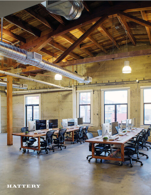 - Description: The Hattery looks after its members with perks such as a health and wellness program that includes a daily chef-prepared lunch, a pet-friendly environment, weekly yoga, running and basketball clubs, weekly farm box deliveries and a monthly happy hour. With a community and workspace for entrepreneurs, 13 conference rooms and a fantastic kitchen space, this dynamic office promotes a culture of innovation, education and community.