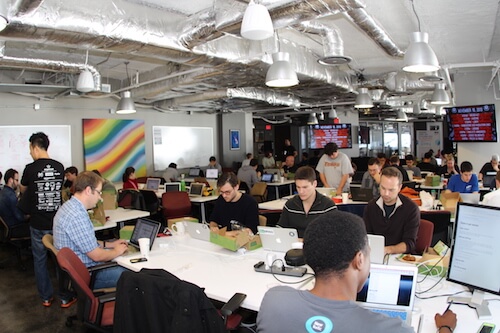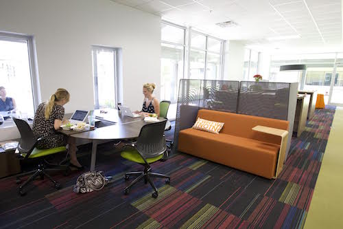 - Description: A huge open space with simple decor, with private offices, conference and event facilities and lectures and workshops. Workers also get “Tuesday treats,” when homebaked goodies are handed out at 3:00 pm every Tuesday, as well as a host of other perks.