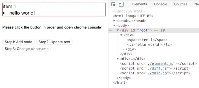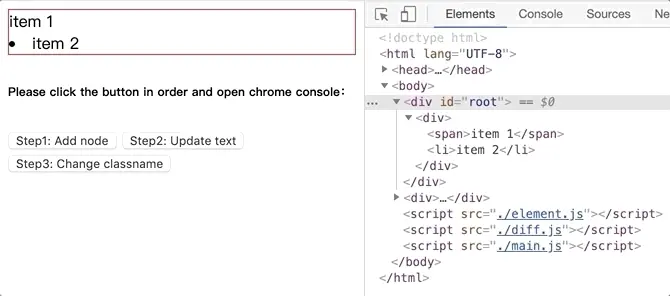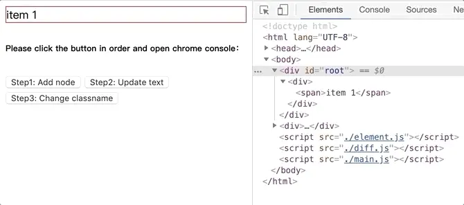將github.com/dongyuanxin/pure-virtual-dom的代碼 clone 到本地,Chrome 打開index.html。