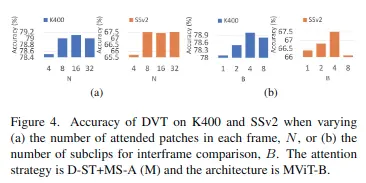 在四個標準視頻分類基準上評估DVT:Kinetics-400(K400)、Something-Something-V2(SSv2)、EPIC-KITCHENS-100(EK100)和Diving-48(D48)