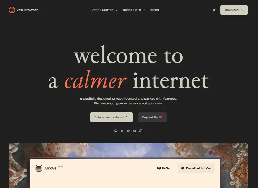 Zen 是一款免費開源的 Firefox 衍生瀏覽器,支持 Windows、macOS 和 Linux 系統(完美覆蓋國內用户主流設備),自 2024 年推出以來,始終以「還原火狐潛力」為核心,目前雖處於測試版階段,但已具備日常使用的穩定性。