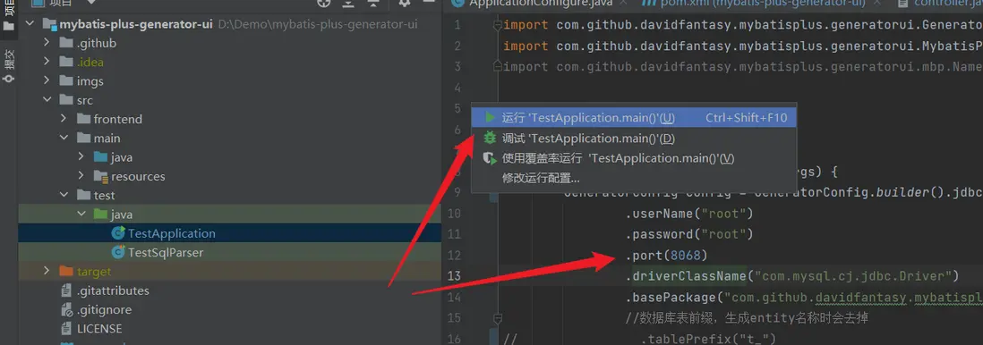 TestApplication.java是生成器的啓動文件,直接讀取數據庫中的表。