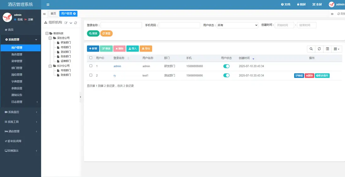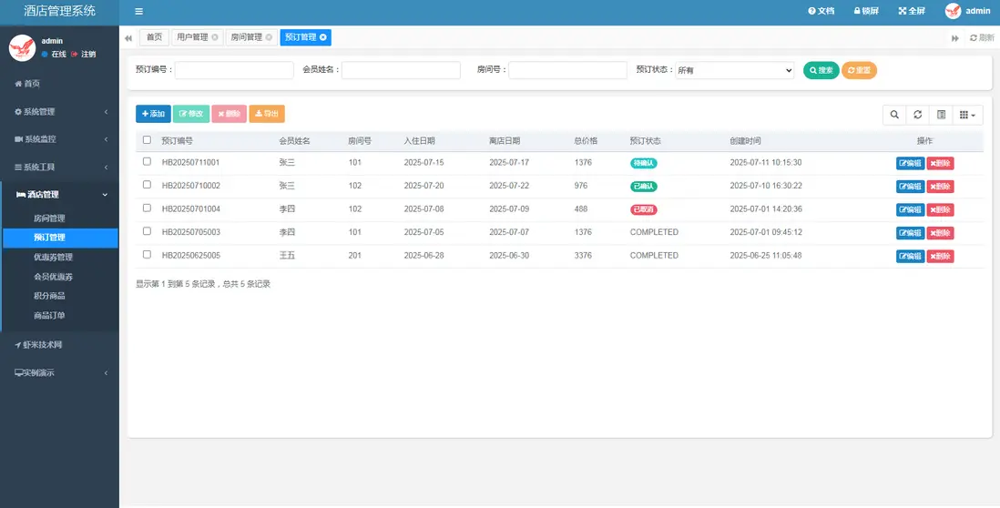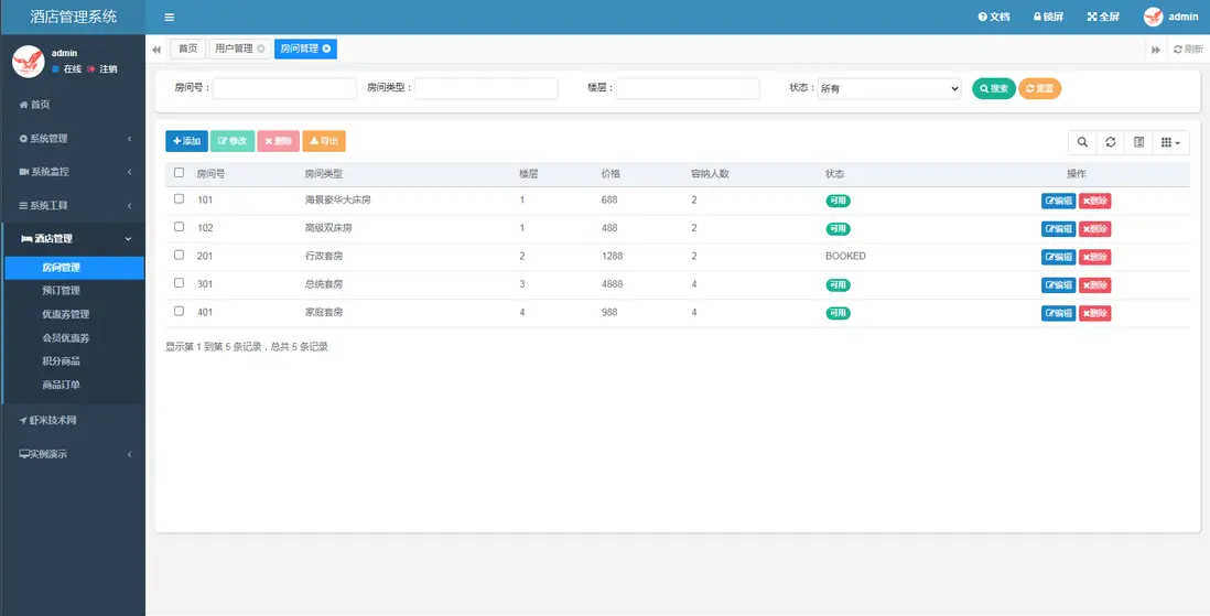 這是一個基於現代Web技術棧構建的全棧酒店管理系統,旨在為酒店行業提供完整的數字化解決方案,通過技術創新提升酒店運營效率和客户體驗。系統採用前後端分離架構,結合了成熟的企業級框架和現代化的用户界面設計,為酒店運營管理和客户服務提供了強有力的技術支撐。