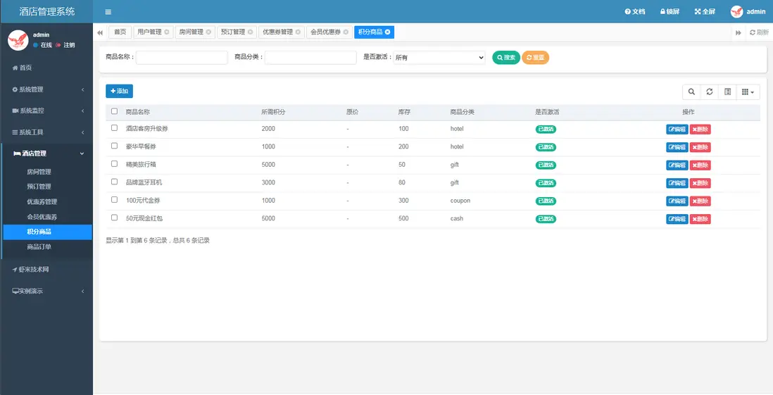• 積分商城 - 積分兑換、商品管理、訂單處理