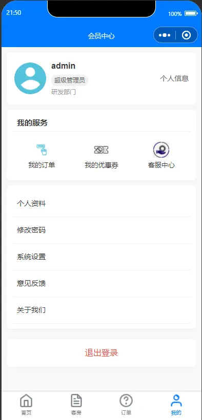 • 個人中心 - 訂單管理、會員信息、積分查詢