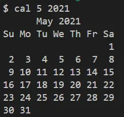Linux中有個cal命令,它可以顯示指定年、月的日曆,如果不指定年、月,默認為當前時間對應的年月。如果使用的是Windows,推薦安裝msys2,這個軟件包含了絕大多數的Linux常用命令。