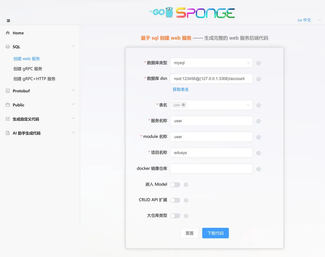Sponge項目地址:https://github.com/go-dev-frame/sponge